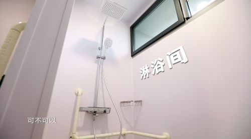 为生活带来彻底改变的不只是节水马桶,淋浴间为老人安装了淋浴时使用的座椅,地面也铺设了防滑的瓷砖。作为淋浴空间的最重要产品——章明设计师团队选用了恒洁淋浴大花洒。这款具有一键切换技术的花洒,让高龄的老人也能方便操作。同时,这款自带水氧技术的花洒,出水特别柔软,能特别表达出梦改团队和恒洁对抗战英雄特别的关爱。