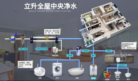 作为净水领域的领军品牌,立升早在1998年,率先提出 “分散式终端分质供水系统”的概念,开发出一系列以超滤为核心的全屋中央净水系统,解决自来水管路输送过程中引起的二次污染问题,有力地推动了净水器在家用领域的应用普及。