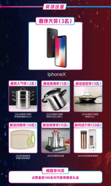 此外,8月16日-9月9日,志邦还携手孙杨、吴莫愁,开展抖音#派对花Young玩家”挑战赛,关注志邦家居官方抖音号,与明星同台竞技就有机会赢取iPhoneX和多款豪华锅具大奖,并设立最佳人气、最佳表演、最佳创意等六大多个奖项,万元厨房好礼送不停!