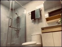 采取一字型布局的整个空间,宽敞明亮又清新典雅。在柔和的灯光点缀下,卫生间有一种卸掉你全身压力的柔和魔力。去掉繁杂的堆砌和布置,发挥“藏起来”的作用,实现化繁为简的北欧风格调营造,无论是配色还是布局都让用户可以感受到媲美五星级酒店的卫生间轻奢享受。说实话,完全不敢相信这是面积只有4.5㎡卫生间呈现的效果,小空间有大运用。