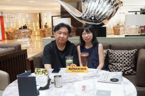 △新浪家居记者(右)与上海名成建筑遮阳节能技术股份有限公司总裁殷文(左)