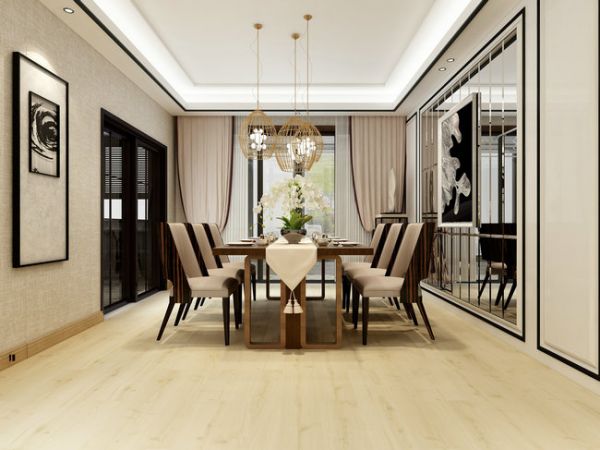 海洋橡木色彩较浅,明度亮,更适合新中式风格。通常为了与之相匹配,墙面色彩搭配,以黑白灰为主,墙壁装饰多采用字画、中式窗花。同时,家具可选用线条简练的典型中式古典家具。