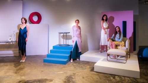 从服装衍生到生活空间,两者皆与人发生关系、形成共鸣。活动现场,在轻快的爵士乐背景下,一个个模特身着由时装设计师序之设计的衣服,以优雅的肢体语言于空间中灵动地演绎出人与家居之间的独特韵味,女性的柔美融于家具所处的语境中,释放出线条与空间之间的关系,素雅幽静的配色和随机的花纹肌理,每一处细节与巧思,让原本富有质感的家具静物增添了更多人文气质和动人感情。