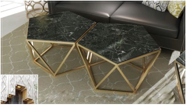 曼哈顿充满现代感的几何切割,使大理石还原最璀璨的钻石形态,采用金色的金属底架与大花绿大理石,碰撞出充满高贵时尚感的几何茶几,是现代都市时尚达人的新宠。