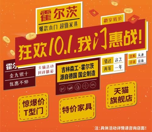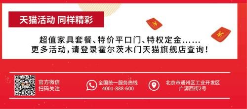 不仅仅是线下,线上的霍尔茨木门天猫旗舰店也推出了众多钜惠活动:超值家具套餐,特价平口门,特权定金……不想出门逛实体店的顾客只需动动手指,便可抢购到与平时同质不同价的产品与服务,究竟霍尔茨在国庆节期间会推出怎样的优惠活动呢?锁定霍尔茨木门天猫旗舰店,更多新鲜优惠资讯,率先到手。
