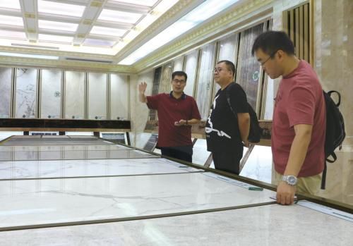 通利大理石瓷砖市场品牌中心总监张恩铭先生陪同顺鑫集团领导一行参观了总部展厅。还原天然大理石的肌质感、以及大理石的铺贴艺术效果得到了顺鑫集团高度肯定与赞赏!
