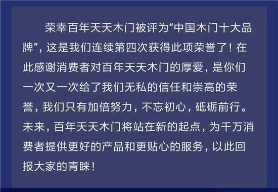 百年天天木门连续四年获得“中国木门十大品牌”荣誉!