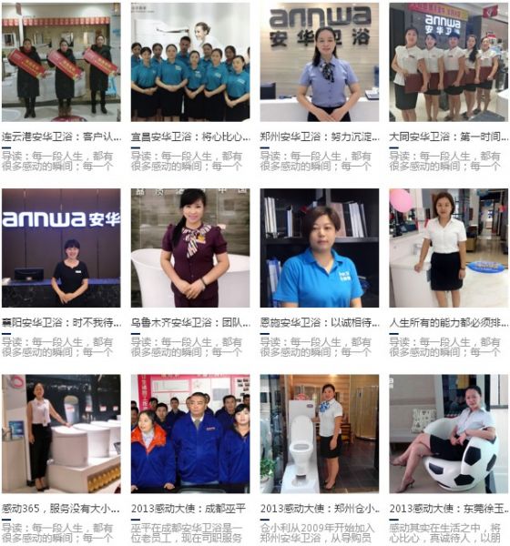 每一段人生,都有很多感动的瞬间;每一个人物,都有很多感动的过往;有这样一群人,用真诚、贴心的服务感动着顾客;有这样一群人,平淡的人生却有不一样的精彩。安华卫浴感动大使,一群跳动的精灵,一些感动的故事,在这里,我们为您展现最真实的安华人,希望感动常在,愿更多精彩。
