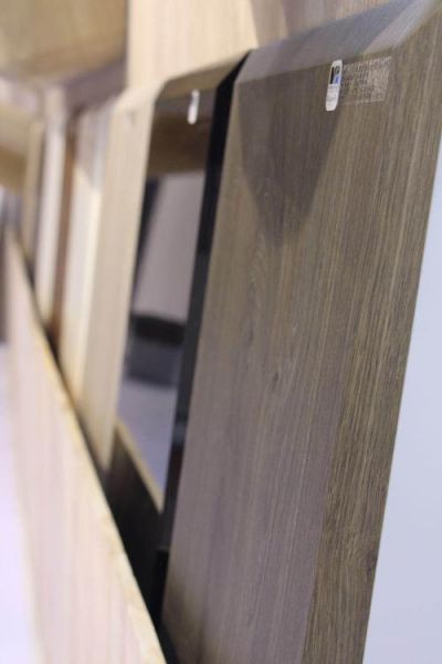 【黄海英】:这次展会我们带来了主要针对成品家居的产品,主要是有这几个系列,一个是PVC系列,它分为3D系列和包覆的2D系列。第二个是我们的PP膜系列,ALKORCELL,聚丙烯为主材的系列。另外一个是PET为主材的系列,我们这次带来了三重产品来展出。同步印刷的3D-PVC,它的视觉和触觉效果跟真实的实木是一模一样的。PET板的防滑性能比一般的PVC要好。
