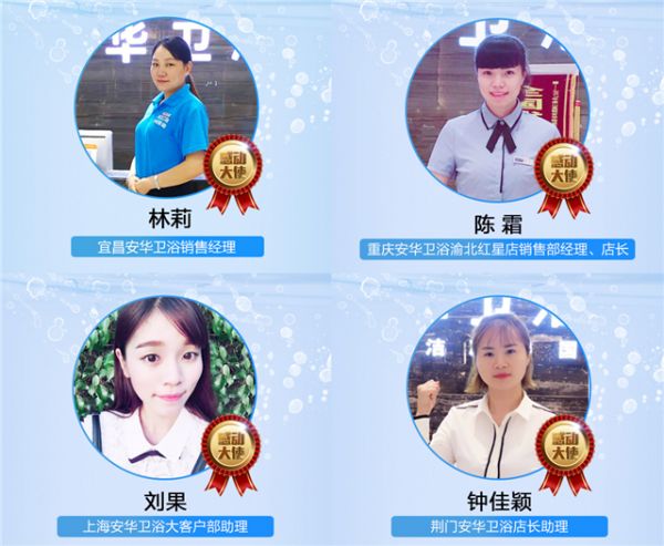 安华卫浴还会评选感动大使,在全国门店范围内,征集感动客户、真诚服务的安华人及故事,进行表彰和学习:每一段人生,都有很多感动的瞬间;每一个人物,都有很多感动的过往;就是这群人,用真诚、贴心的服务感动着顾客;就是这群人,平淡的人生却有不一样的精彩。安华卫浴感动大使,一群跳动的精灵,许多感动的故事。
