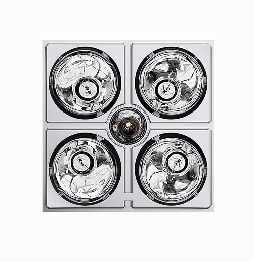 第一代的浴霸就是简单粗暴的白炽大灯泡发热,上个世纪九十年代就开始研发并投产了,市场上卖得时间最久的就是这种灯暖浴霸。它以特制的红外线石英加热灯泡作为热源,通过直接辐射而加热室内空气,不需要预热,可在瞬间获得取暖效果。不过安装的位置要尽可能高一点,不然会出现头热脚冷的情况。
