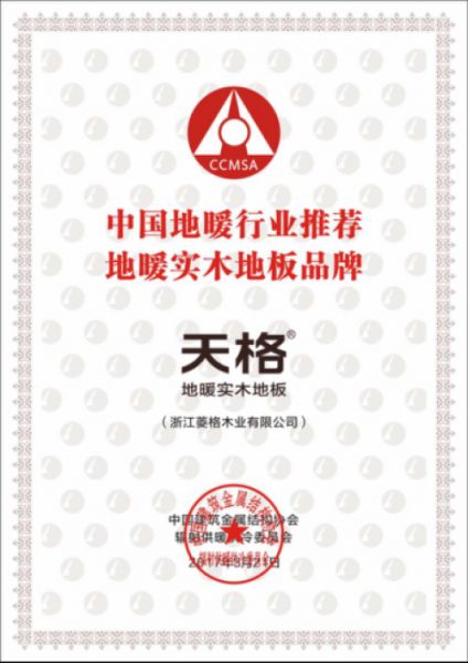自2015年起,天格更跨界暖通行业,连续多年参加北京暖通展、上海供热展,同时参加地暖万里行、地暖大讲堂等活动,全面推广地暖实木地板品类。正是因为天格的这些努力,2017年地暖实木地板终获暖通行业全面认同,并获得行业首个“中国地暖行业推荐地暖实木地板品牌”,被暖通行业一致公认为地暖实木地板专家与领导者。