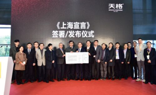 但是,在天格看来,负责起草各项标准只是一个开始,而未来标准的宣贯、推广以及修订升级,才是更为重要的长期工作。在国标颁布后,天格立刻组织力量进行宣贯——与各级行业协会、地方政府、行业专家一起签署发布了《上海宣言》,率先提倡“贯标、采标、升标”,呼吁整个行业共同作好进入“标准化时代”的各项准备,为品类的健康发展尽好责、出好力。《上海宣言》的发布,是业内针对国标颁布实施的首次大型宣贯工作。而首届地采暖用实木地板品类大会,为品类的正名行动,是又一次重要宣贯活动。
