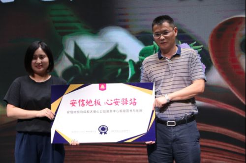 现场活动,热心公益的安信地板向成都天使心公益组织赠送了“心安驿站”的第一批爱心物资,为身心障碍患者家庭送去最真挚的温暖和关怀。