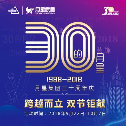 正逢中秋、国庆双节,月星家居开展的“跨越而立,双节钜献”的主题营销活动,于2018年9月22日至10月7日,通过多元的活动和优质的服务,将这一份感恩和回馈切实地传递给每一位消费者。