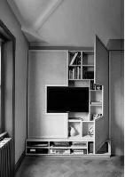 翻盖式——如果电视墙采用翻盖式设计,可以做到双面放东西,还可以在看不见的另一面藏东西,实用又有趣!