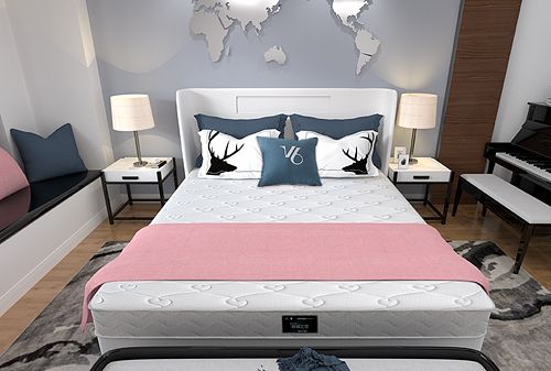 V6乳胶床垫符合人体工程学分区设计,根据人肩、腰、头、颈、臀、腿、脚等受力状况设计弹簧分布,使床垫与人体曲线紧密贴合,保护人体脊背,有效纠正不良睡姿,符合人体工学和自然生态睡眠系统,帮助人体快速进入睡眠,减少翻身次数,延长深度睡眠时间,提高人体睡眠质量,同时较佳的支撑力能够适应睡眠者的各种睡姿。