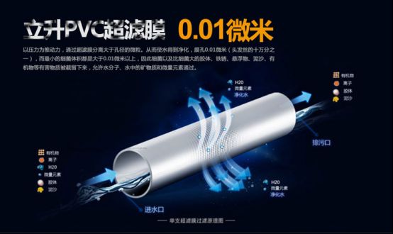 超滤膜是膜孔径范围在0.01-0.1微米之间的高分子分离膜,通过在膜的一侧施加适当的压力可以筛出小于孔径的溶质分子,在水处理领域有着广泛的应用前景。围绕超滤膜,有26年净水设备研发经验的立升净水自主研发了PVC合金毛细管式超滤膜,并将其运用在各类净水设备上,其中包括家庭净水设备。