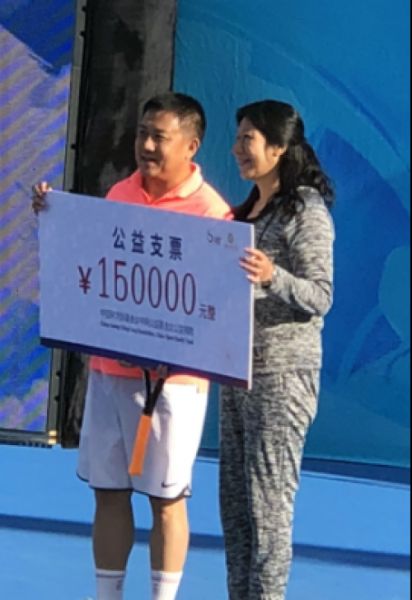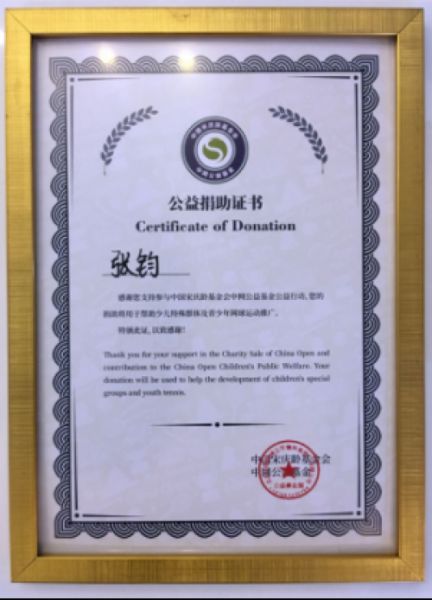 在简单的暖场活动之后,张钧与张帅组队,共同与德尔波特罗开展了一场激烈的双打抢七比赛。最终,张钧一击绝杀,以7比3的比分战胜了德尔波特罗。比赛结束后,宋庆龄基金会专门为张钧董事长颁发了公益荣誉证书,以表彰他的爱心之举。