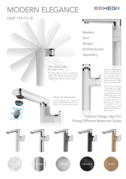 此次荣获G-Mark设计奖的恒洁HMF119-111B龙头是一款颜值与实力兼具的产品,外观设计风格优雅时尚,采用天方地圆的几何设计理念,通过金属与陶白效果4:6的黄金比例的材质对比,极富视觉美,体现简约现代的生活方式和高雅品味。