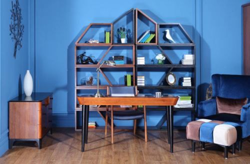 蓝色,能够让人的心沉静下来。以蓝色为背景,简约型的朴实书桌以及现代化的白色桌椅,两种不同的颜色碰撞出别样的书房风格,也不失为一种简约型书房构造。