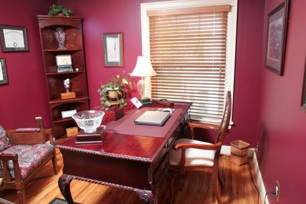书房,是人们在家里办公学习的场所,它既是办公室、学校的延伸,又是家庭生活的一部分。一抹灿烂的碎花窗帘让书房充满异域风情,一墙琳琅满目的书籍让书房显得广袤无垠。所以颜色的搭配极其重要。