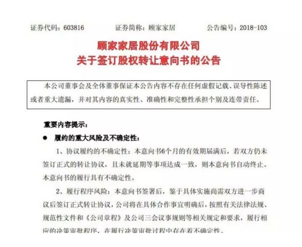“本意向书的有效期为6个月,正式协议的签署尚需满足一定的条件。”或许顾家家居公告中的这句话,可以给关注顾家家居、喜临门联姻的人们降降温,未来如何,还是静等6个月后尘埃落定再做评判。(来源:北京商报,作者子文、洞天)