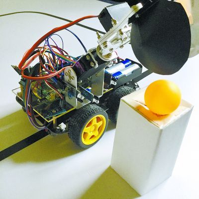 要能存取货物,首先要实现机器人的自动行走。刘东泽说,目前最基本的行走方式就是循迹行走,通过在机器人的前端朝向地面方向安装红外发射检测模块,就可以实现机器人在提前设置的轨迹上行走。
