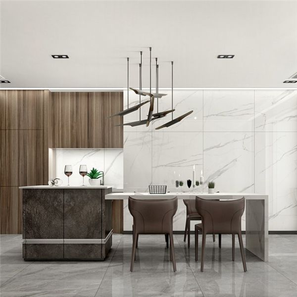 为什么大板瓷砖会如此受欢迎呢?在视觉效果方面,大板瓷砖因为大规格大面积,而凸显出大气简约之感,平整、厚度偏薄的外观符合现代人追求的平板化设计。在使用方面,由于大板瓷砖可以自由切割,而提供给了设计师更多的可能性,不仅可以作为地板和墙面的铺贴材料,还能成为幕墙、台面等设计装饰的材料。