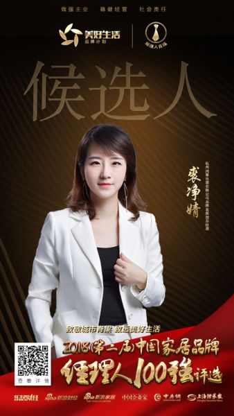恭喜杭州鸿雁电器有限公司裘净婧女士提名2018中国家居品牌经理人100强评选。
