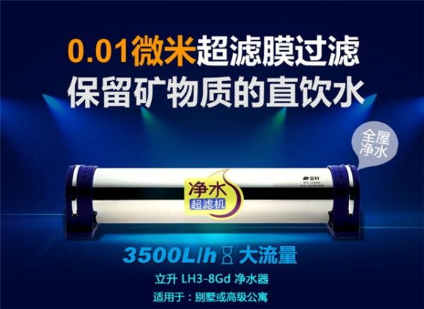 以立升超滤净水器为核心的立升全屋中央净水更是为广大的消费者带来了一整套的全屋中央净水解决方案。能够有效分离自来水中的铁锈、泥沙、胶体、藻类、细菌等有害杂质,并保留水中对人体有益的天然矿物质和微量元素,在入户总管处就能保障一家人用水的健康安全。同时搭配不同的末端超滤伴侣,能够实现家庭分质供水,全方位解决从饮食到洗浴的家庭用水健康安全问题。