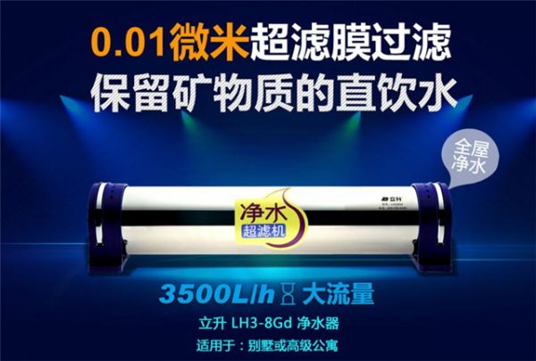 提到全屋中央净水器,就不得不提立升净水了。立升全屋中央净水器堪称自来水二次污染的“天敌”。立升全屋中央净水器采用了其自主研发的PVC合金毛细管式超滤膜技术,该技术在膜分离技术发展史上具有里程碑意义。立升PVC合金毛细管式超滤膜是一种过滤精度高达0.01微米的新型高级高分子材料,它的表面布满了无数肉眼看不到的微孔,当自来水进入立升全屋中央净水器后,在水压作用下,只允许水分子和对人体有益的矿物质、微量元素通过,而细菌、铁锈、胶体等杂质被截留在管内。其过滤精度高,对污染物的滤除率高达99.9999%,能从根本上解决自来水二次污染的问题。