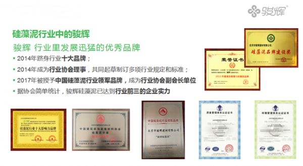 作为行业有力生力军的骏辉硅藻泥,始终在行业协会里发挥着重要作用,2018年荣获行业协会官方授予“行业领军品牌”认定,让骏辉硅藻泥在现代家装市场的每一步都走得踏实有力!