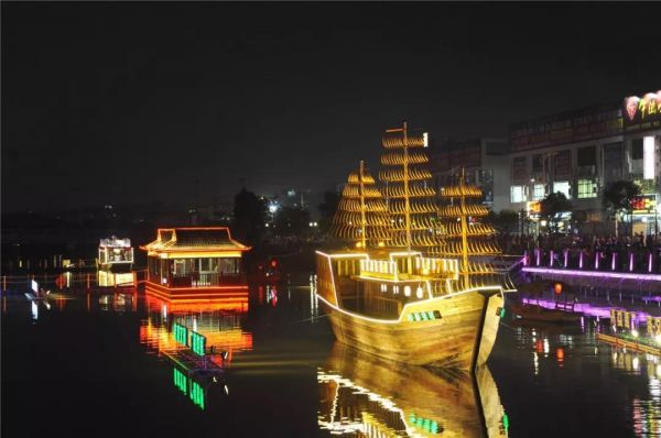 今年的古镇灯光文化节更加注重科技与文化的融合,创新将往年的彩车巡游升级为彩船巡展。镇政府、村委、企业共同打造6艘灯光彩船将在今年灯光节全新亮相,安排在中心滨河湿地公园(沙古公路以北段)进行展示。这是继国家级非物质文化遗产“六坊云龙舞”和古镇特色“荷花龙舞”等民俗文化穿上灯光科技新衣后,又一个以新载体、新形式展示灯都文化魅力的创新举措。
