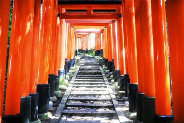 日本的神社数不胜数,伏见稻荷大社脱颖而出闻名于世,鸟居有很大的功劳。朱红色的鸟居层层重叠、连成一片,看上去非常震撼人心。这里的鸟居是参拜许愿的人们在心愿实现之后,作为回礼进行的奉纳,这一礼节从江户时代起便开始流传。至今,其总数已达1万以上。从这里走过的人们,无一不为这朱红色的空间与梦幻气息而震撼。