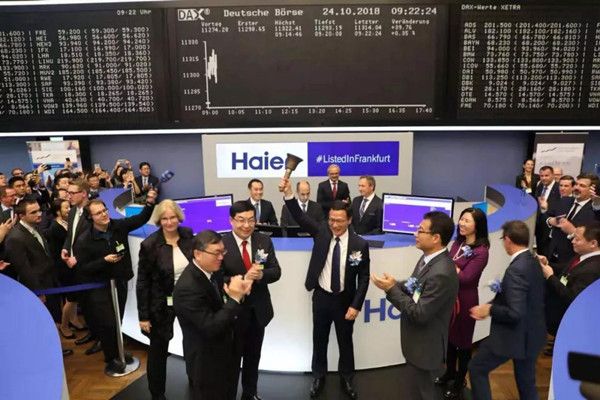 法兰克福时间2018年10月24日,青岛海尔股份有限公司(SHA:600690,“青岛海尔”或“公司”)(D股股票代码︰690D)于上午正式登陆中欧国际交易所股份有限公司D股市场(以下简称“中欧所D股市场”) ,并通过法兰克福证券交易所的准入并挂牌交易实现上市,成为中欧所D股市场第一支D股股票。青岛海尔是第一家于中欧所D股市场上市的公司。