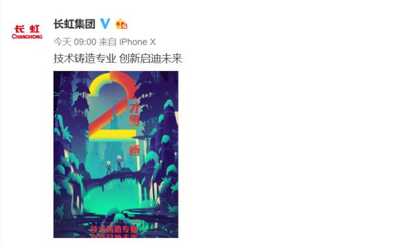 “技术铸造专业,创新启迪未来”,今天上午,长虹官方微博发布了第二张建业60周年活动海报。海报主题文案“才贯二(2)酉”显示,长虹建业60周年庆已进入倒计时阶段。两天之后,长虹建业60周年活动将在长虹总部开启。