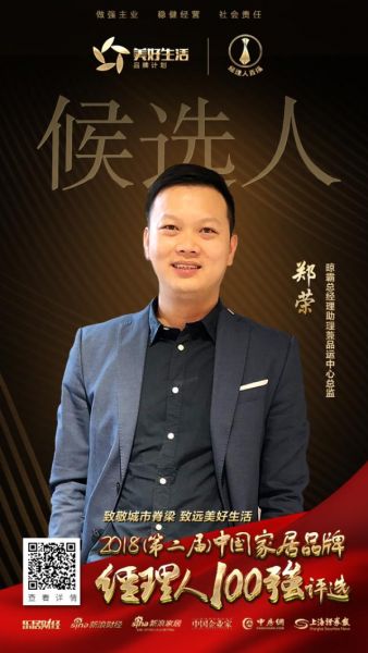 快讯:晾霸郑荣提名2018中国家居品牌经理人100强