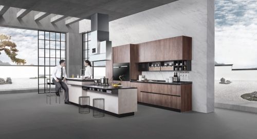 第一点,简单而富有层次的颜色。厨房的颜色应该控制在三个颜色以内,以一个颜色为主导,其他颜色为辅。柏厨的厨柜设计深谙此道,以柏厨时光印橡举例,这个系列的厨柜设计有三种颜色搭配,分别是古铜棕+暖黄金的秋日古藤、石竹柏+页岩灰的竹林月光和烟草黄+BOSS灰的旷野新贵。都是以清冷色为主要背景色,灰色、木纹色配件颜色为补,最后呈现出和谐又貌美的厨房搭配。