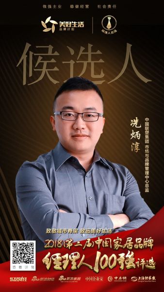 恭喜中国联塑市场与品牌管理中心总监冼炳淳提名2018中国家居品牌经理人100强评选!