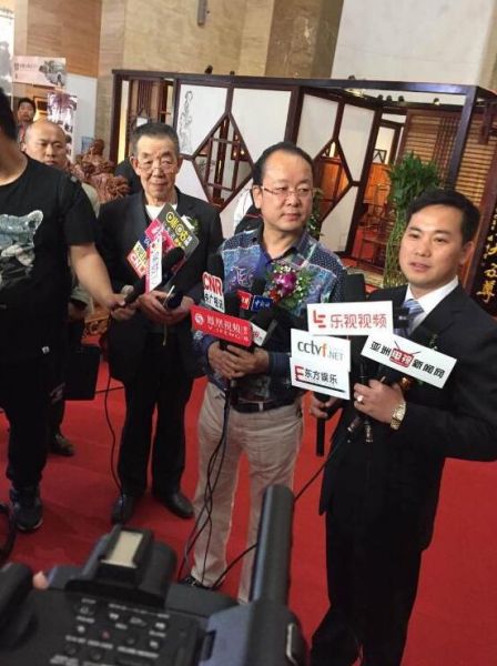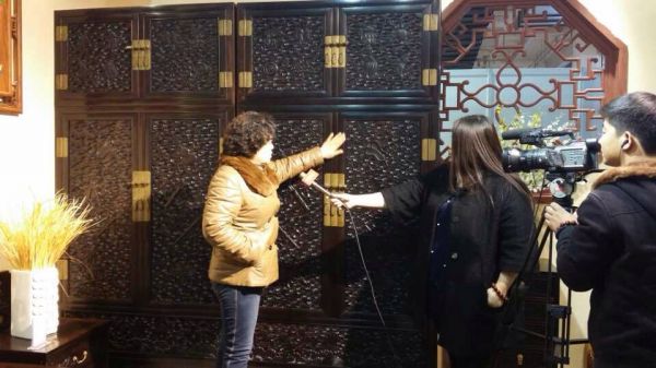 图为:上届红木家具展会主办方联合参展商接受媒体采访