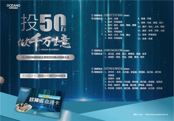公司目前拥有近2000家经销门店,因业务发展需要,现正全国火热招商中,加盟欧神诺陶瓷即可享受以下十大贴心政策支持: