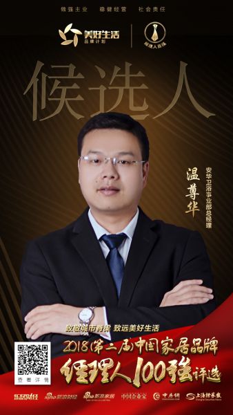 恭喜佛山市高明安华陶瓷洁具有限公司安华卫浴事业部总经理温尊华提名2018中国家居品牌经理人100强评选。