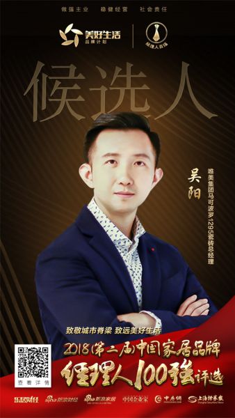 恭喜广东唯美集团马可波罗1295瓷砖总经理吴阳提名2018中国家居品牌经理人100强评选!