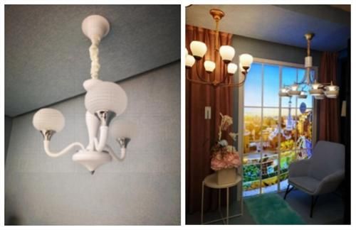金色灯杆与瓷白灯罩,整体造型像是即将开放的花朵,金与白作为Ins风的经典配色,在整体家居布置和灯饰中极为高雅。但是大面积的使用白色家具从日常打理和防尘来说都不是一个很实际的选择。金白色为主调的灯饰更适合日常的生活空间。