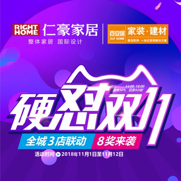 仁豪家居双十一促销,全品类厂家让利,仅此一次!