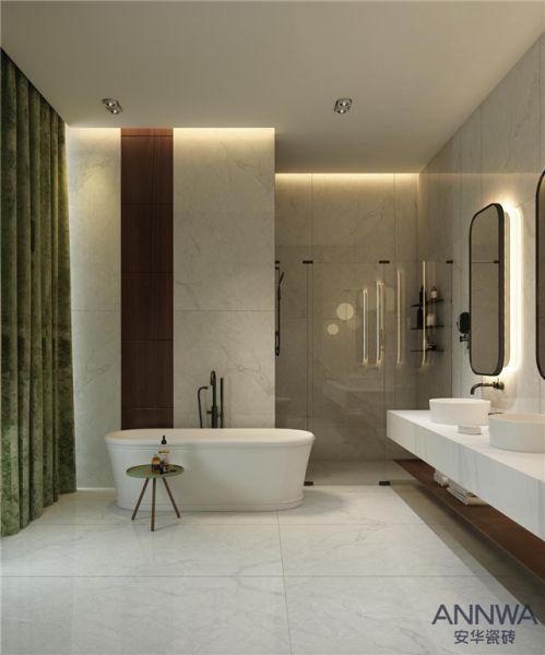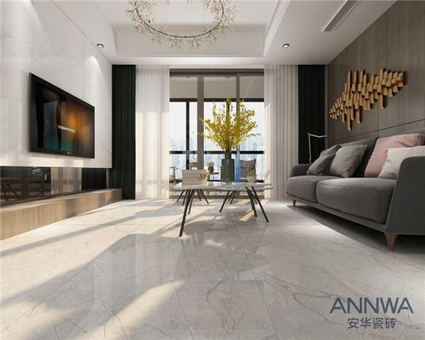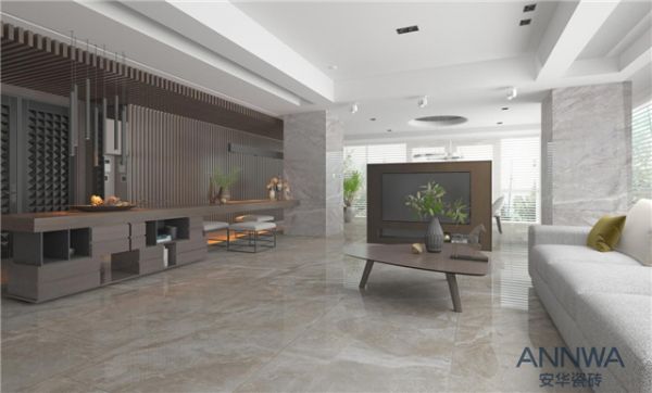 相较来说,安华瓷砖的PLUS+算是市面上不错的一款,很多人都在用。它既有1800*900的规格,又有600*1200的规格,在满足大板砖的优点的同时运用了“一石多版”的技术,相较于市面上的大板砖应用范围更广。