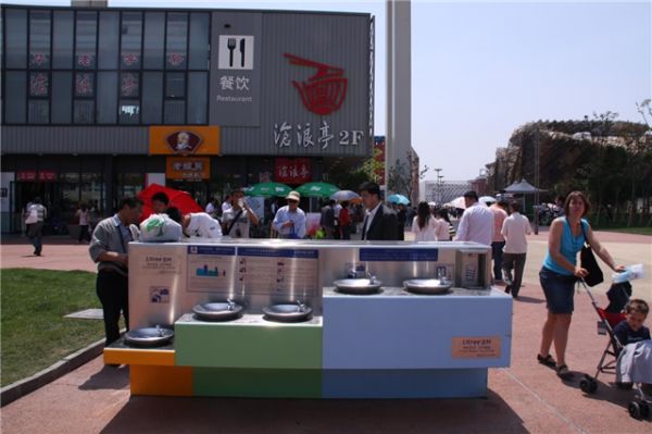 上海世博会是历史上第一次提供免费直饮水服务,累积184天安全提供约15万吨,相当于3亿支普通矿泉水。不仅为游客节省近8亿元人民币购水,还帮助世博减少了近15万立方米的塑料垃圾,为环境减少约0.20吨二氧化碳排放。
