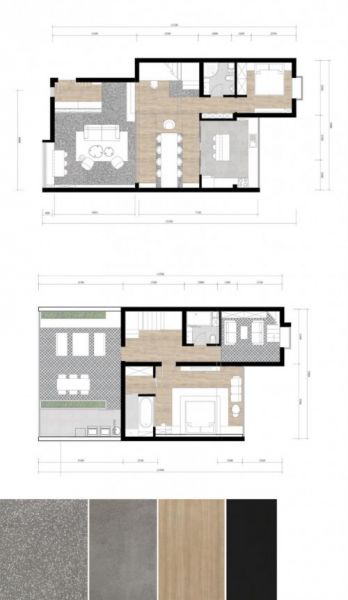 我们只使用三种颜色:白色,灰色和黑色,有三种主要材料:天然木材,水磨石和白色墙面涂料。