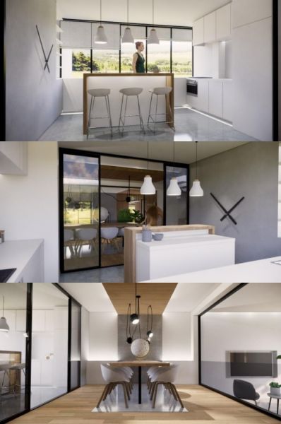 一楼是全开放的多功能区域,利用不同地面高差做了空间划分。规划了令人开心的大厨房,读书区,办公应用开放区。